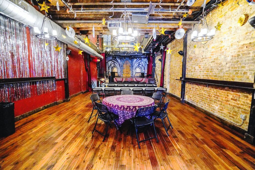 Located in Scruffy City Hall. The Medieval Hall is our largest indoor space available, it is on the first floor and has an Ultra-Hi-Def widescreen video system complete with phenomenal audio, a stage, full-bar service, and casual or formal (buffet) dining choices available. Capacity is up to 200 people