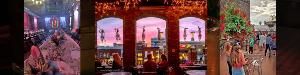 Located on the rooftop of Scruffy City Hall which makes for an unforgettable location. Capacity 100.