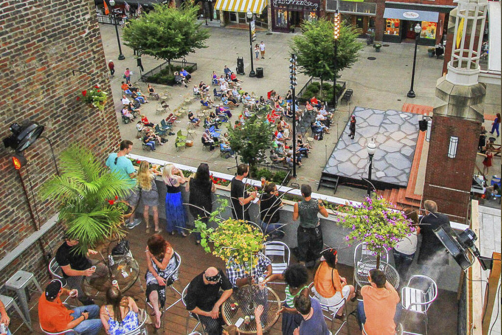 the Loggia Balcony Bar is a large covered space on the second floor of Scruffy City hall. Capacity 30 people.