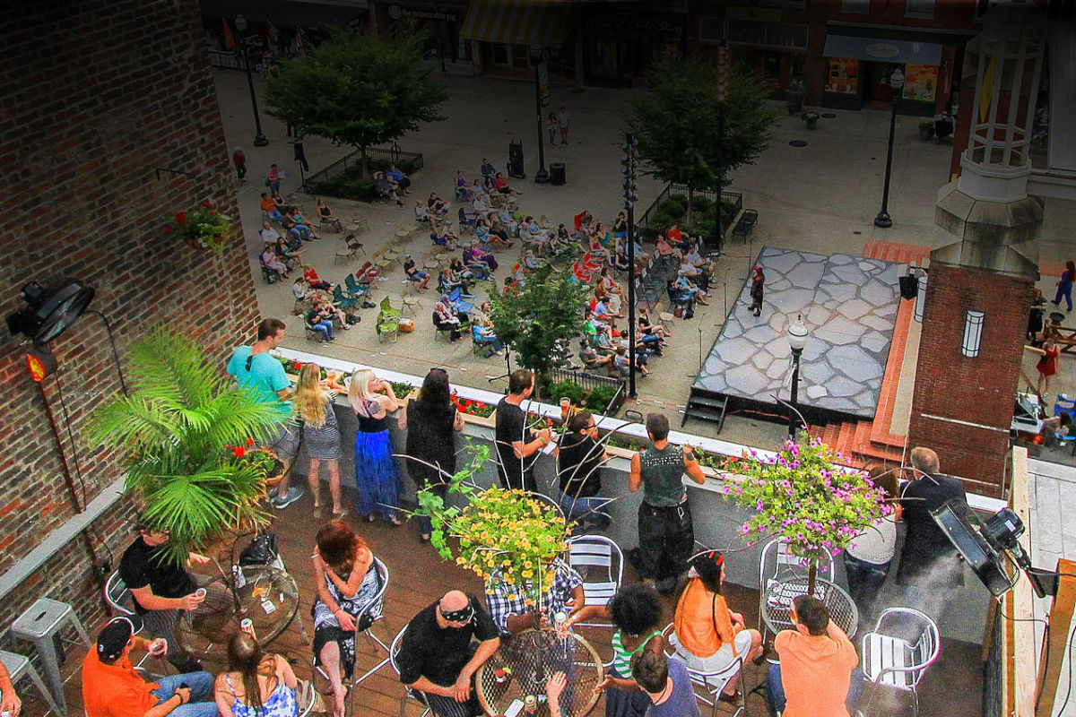 the Loggia Balcony Bar is a large covered space on the second floor of Scruffy City hall. Capacity 30 people.